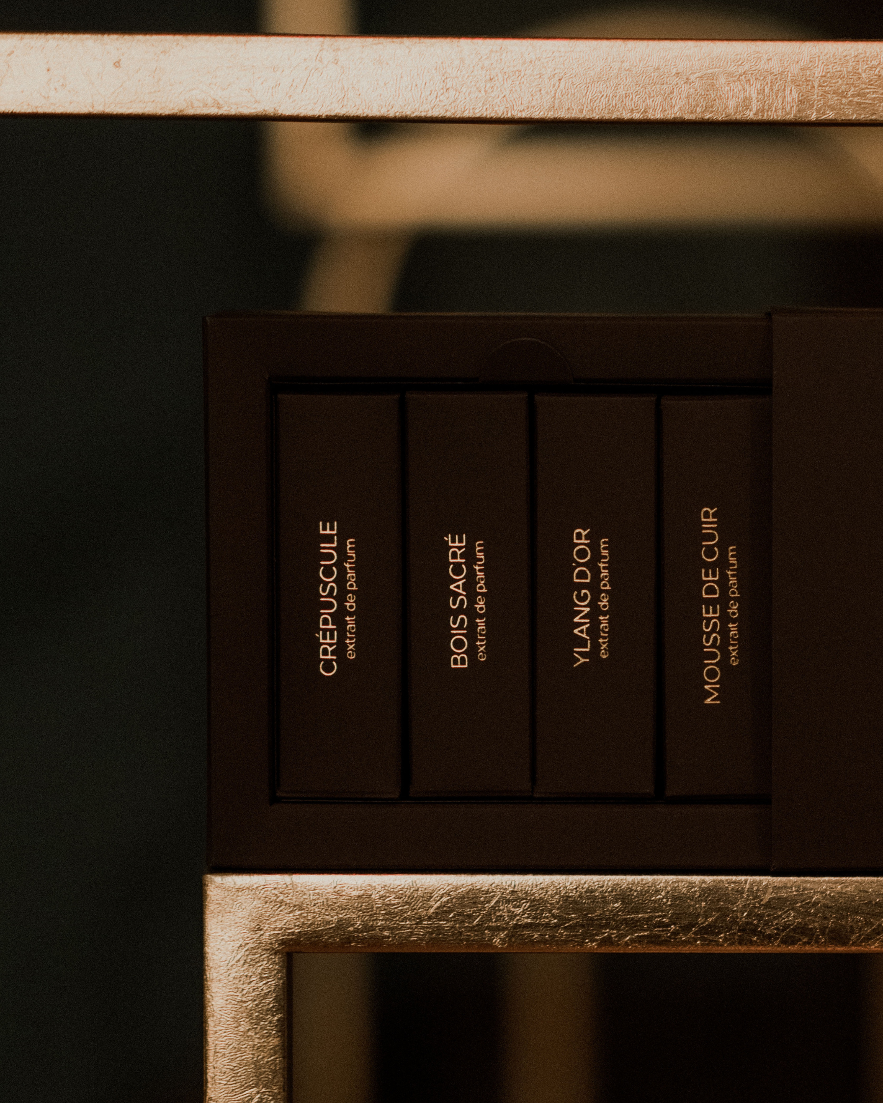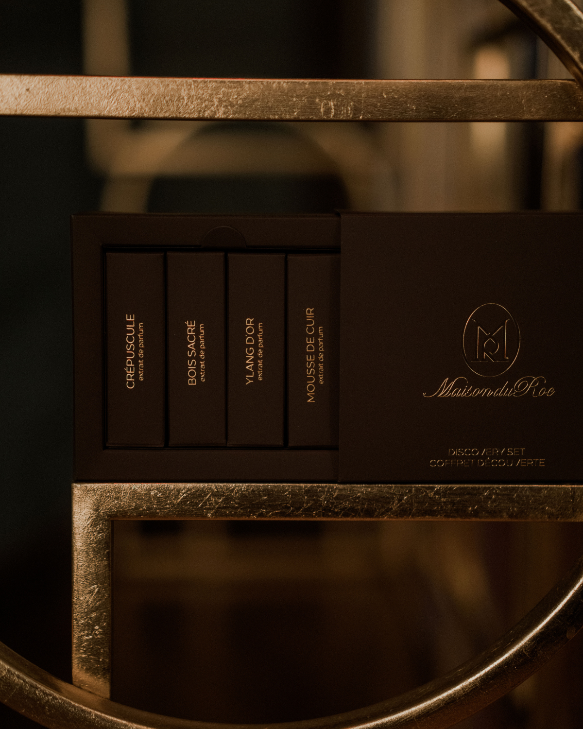 Unveil the essence of Maison du Roc with our Discovery Set – four 2.5ml Extrait de Parfum vials from our L’Essence du Temps collection. A refined way to experience the house before choosing a ful – size.